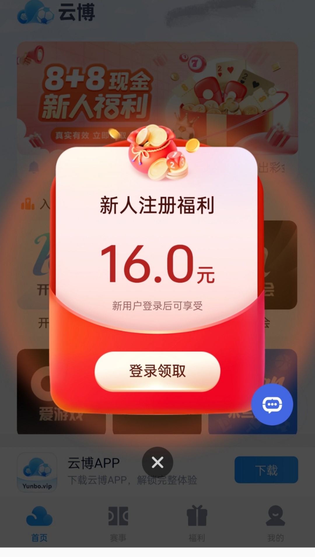 新用户下载APP注册领16彩金,联系在线客服兑换即可