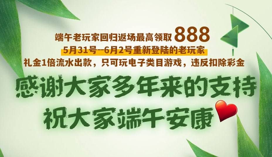 端午老玩家回归返场最高领取888,5月31号–6月2号重新登陆的玩家礼金1倍流水出款