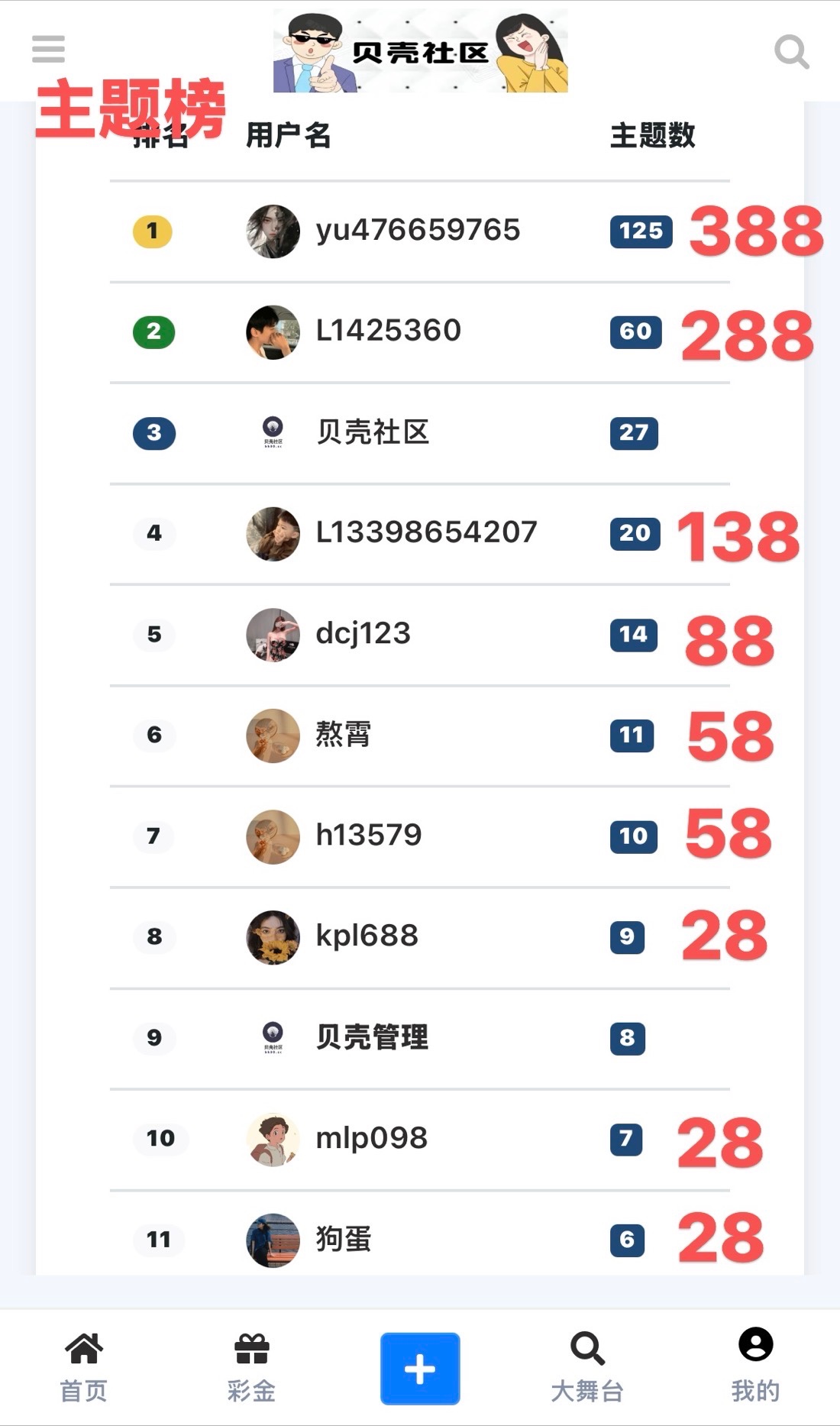 三、公布7月优秀发帖者楼主奖励 有以下名单的楼主