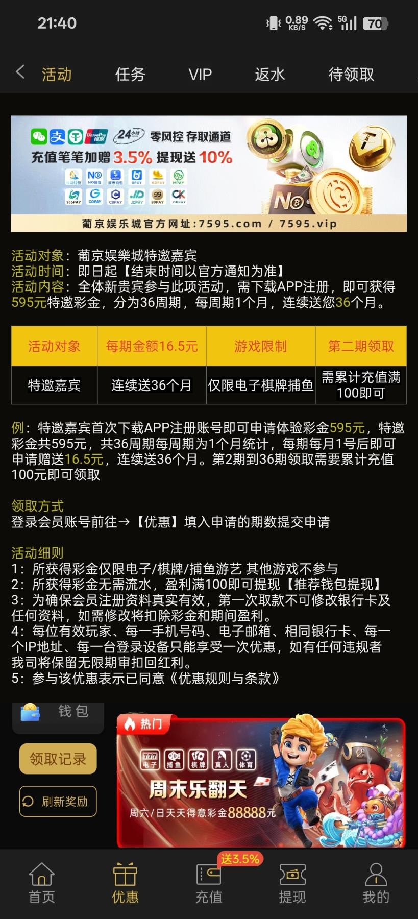 优惠中心自助申请特邀彩金