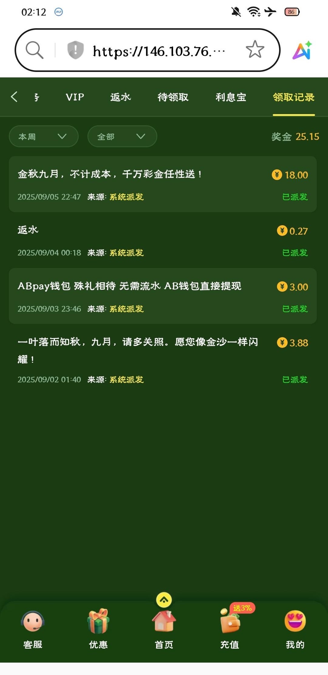 金秋九月送了18彩金,充值过的老用户登陆领哈。