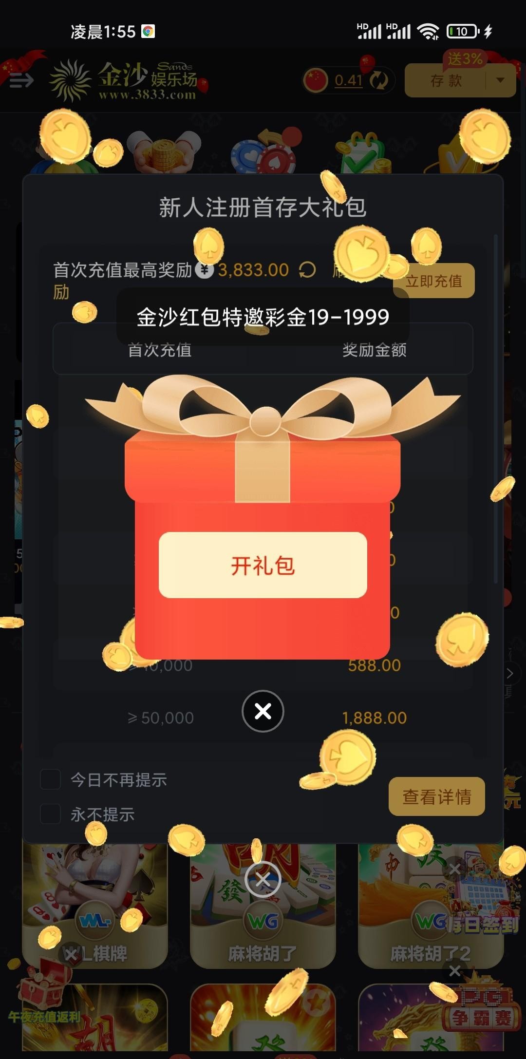 注册社区每日送10-50金币