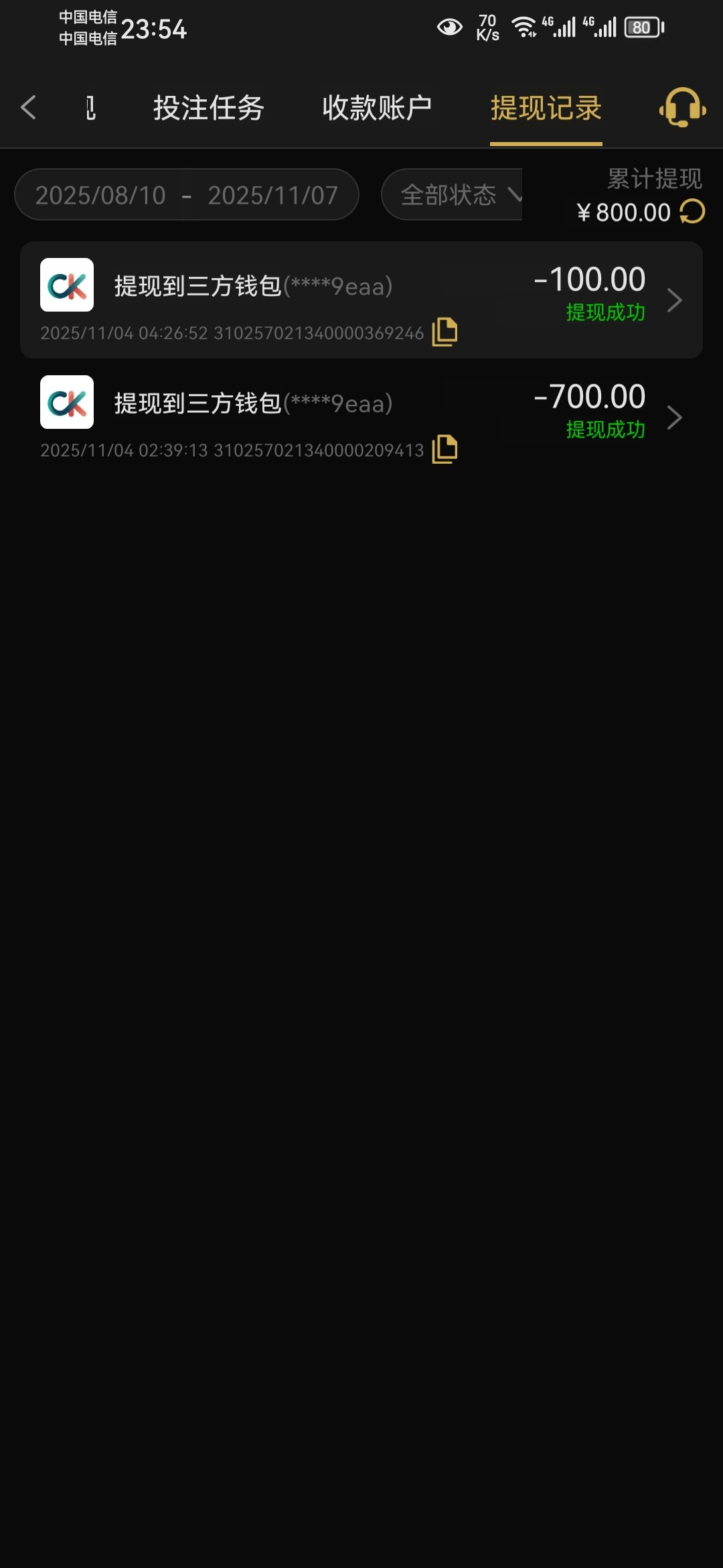 我两个号上了一个出了800还有一个号还没打