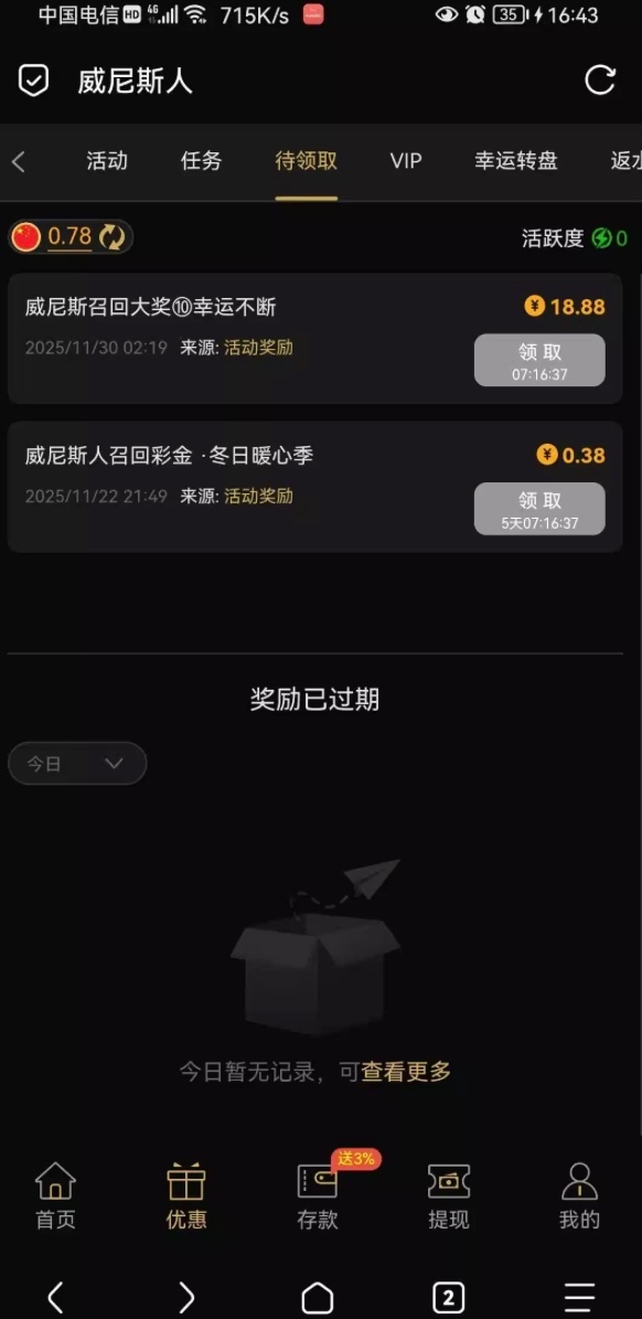 领特么几毛钱的神秘彩金,傻逼平台