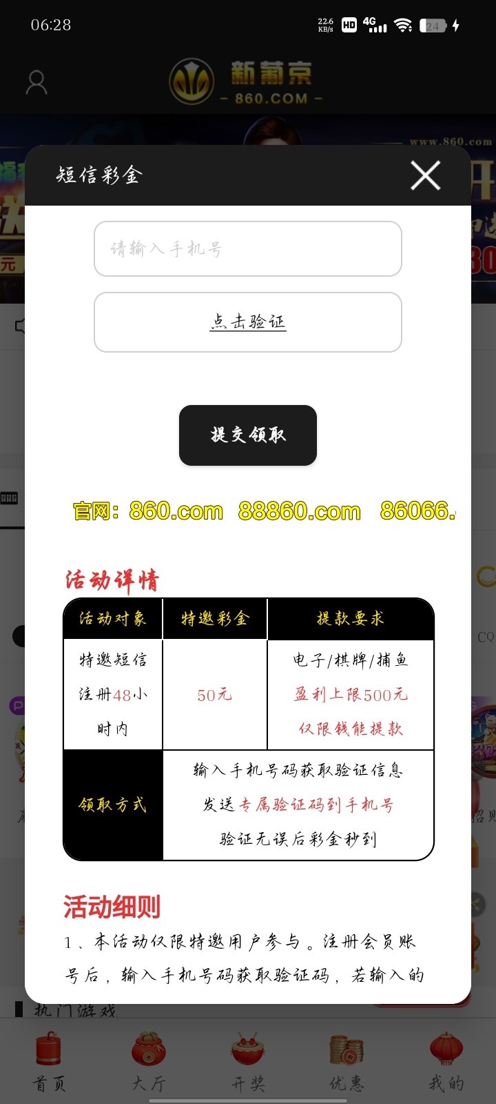 注:特邀验证手机号可以领取50 各位老哥可以去试试运气 可提不黑钱 860.com 86066.com