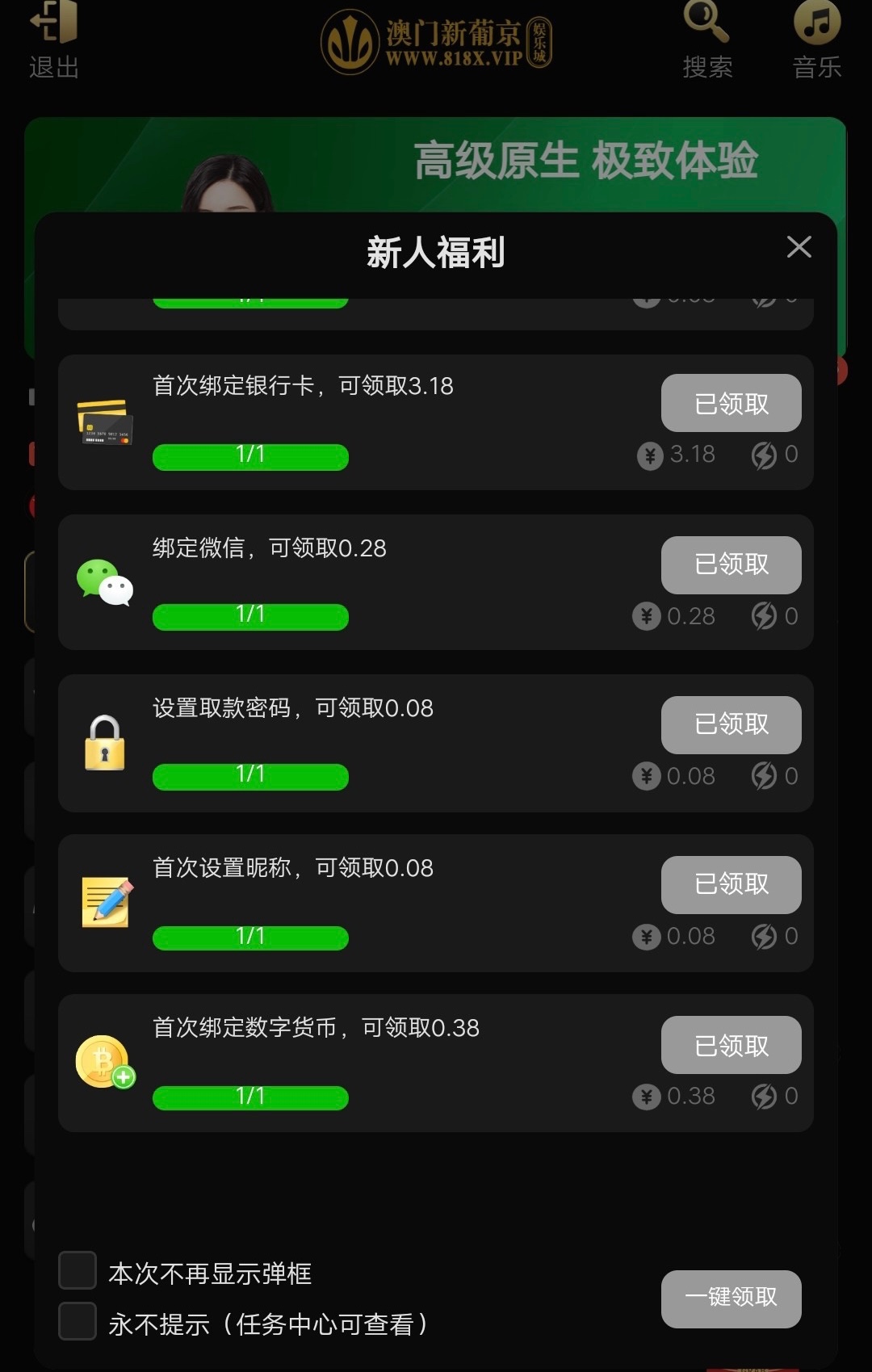 新用户注册任务8元彩金,可以电子,白嫖切勿充值