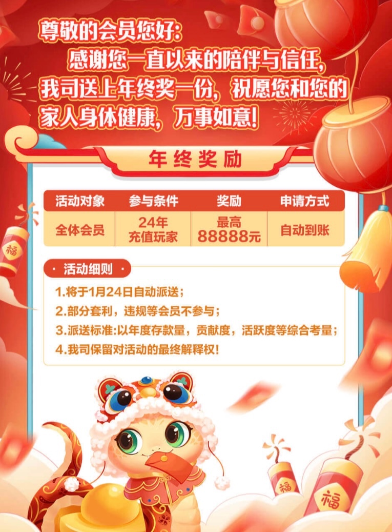 老用户有号充值过的自动派发领取年终奖励,多少不清楚,具体自测吧。