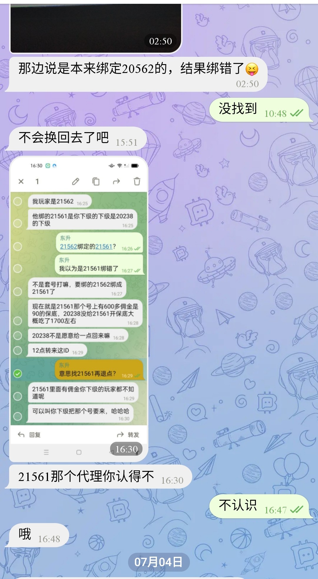 就是之前谁注册过是这个ID的,有人绑错他ID了,然后给他打了不少佣金
