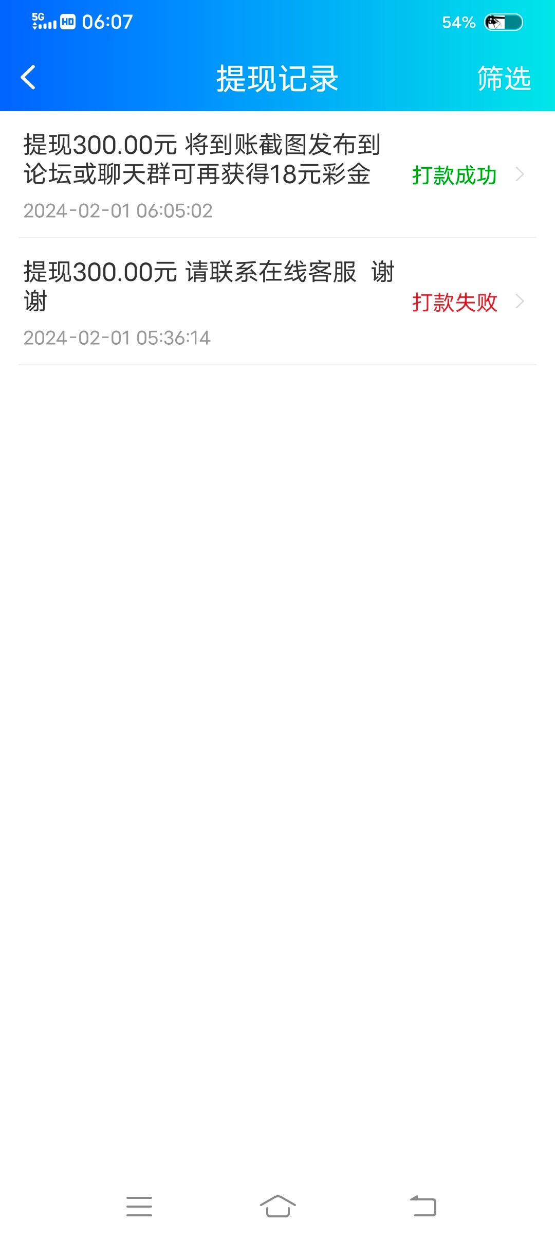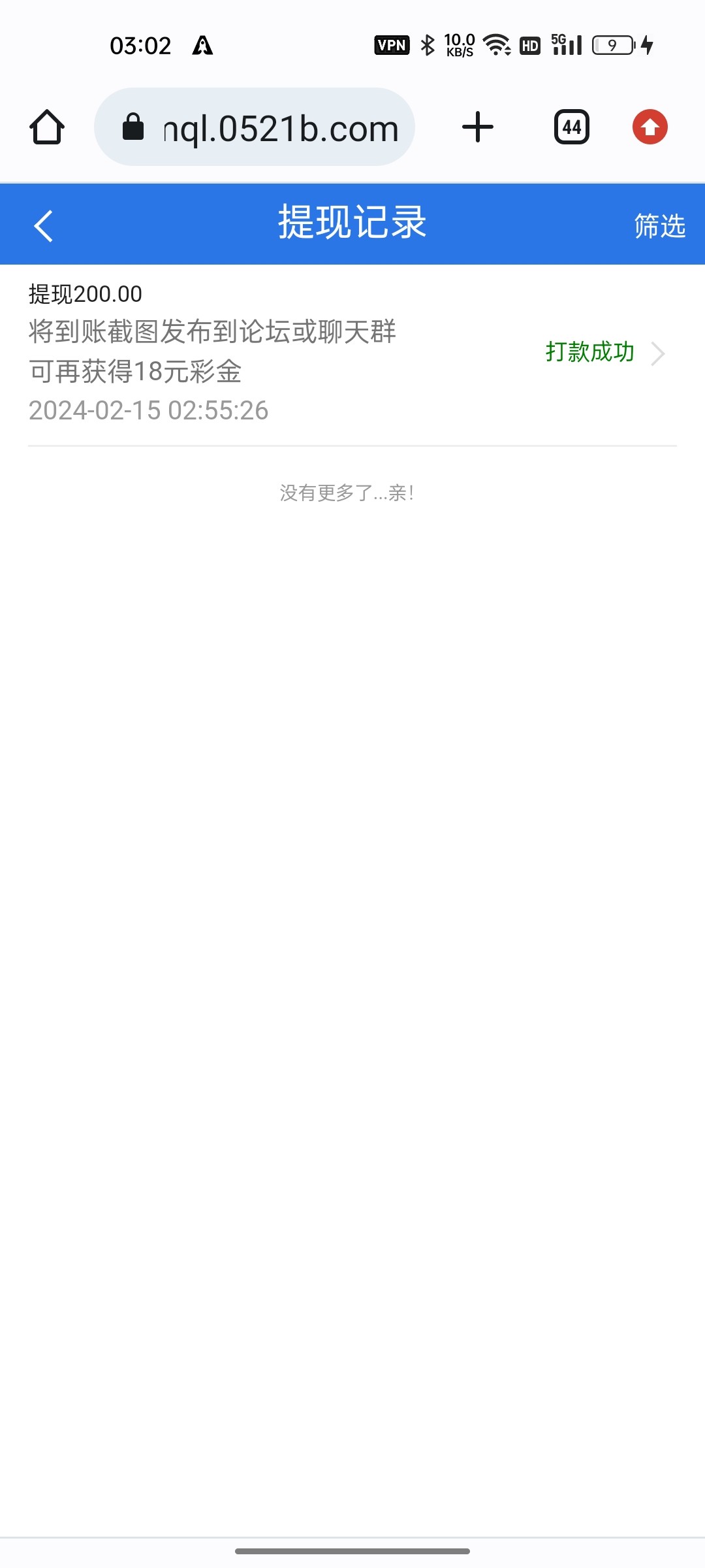 提现二百到账