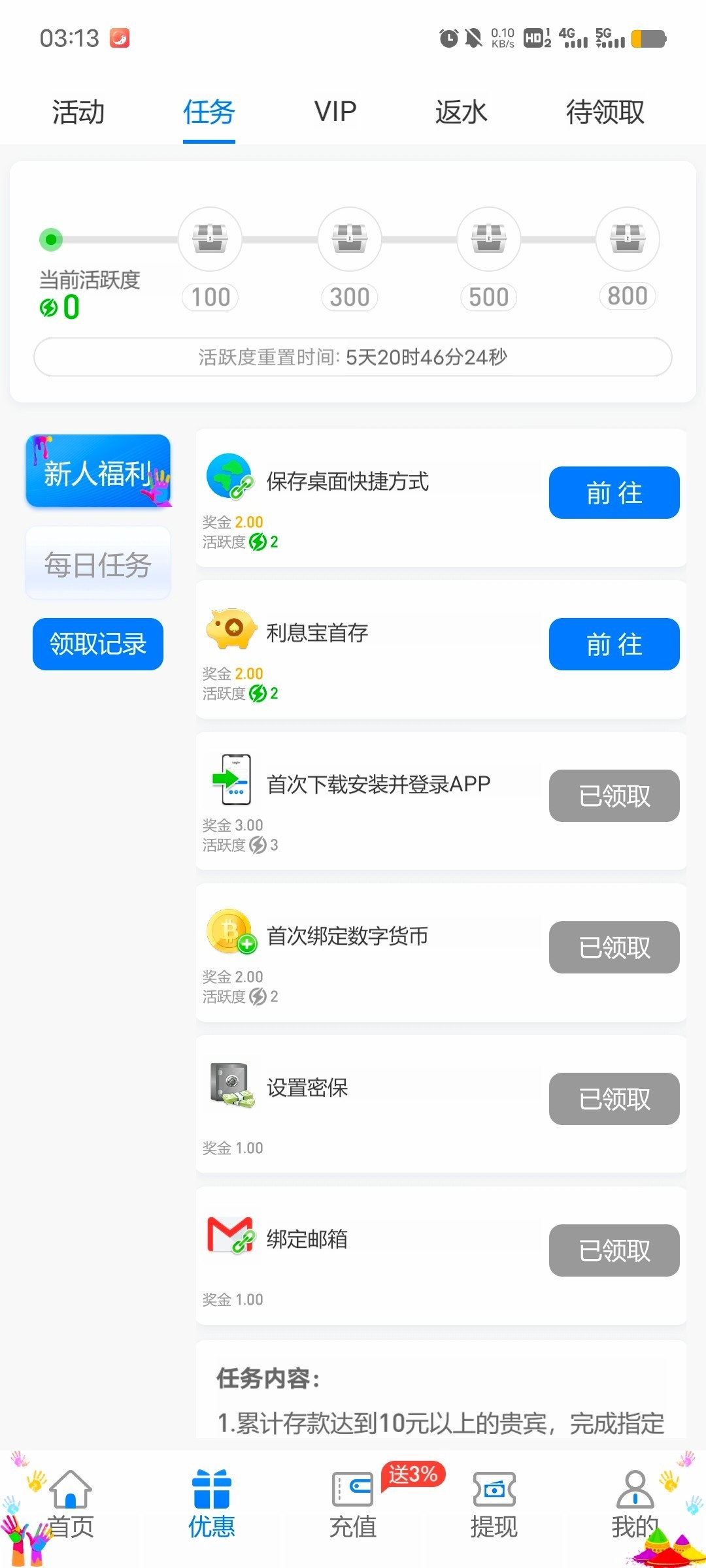 注册绑卡,完成新用户任务,出款自测