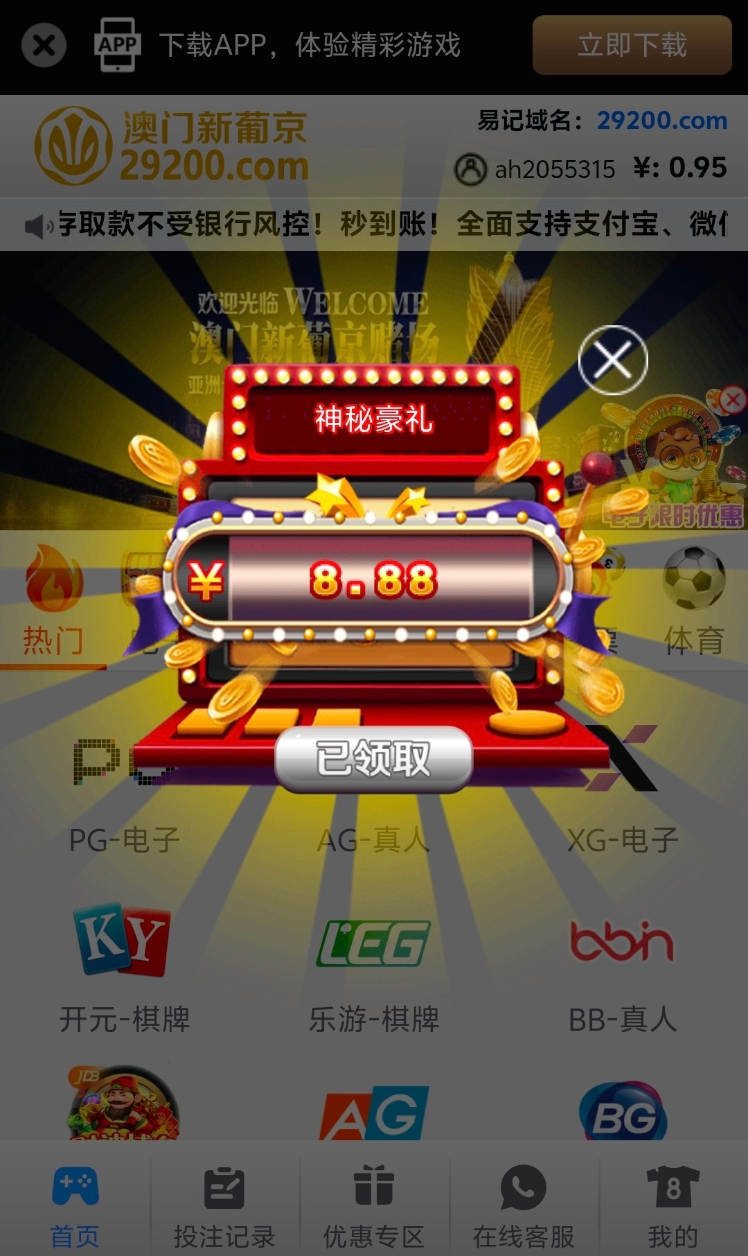 签到系列的平台 大部分兄弟应该都有号 有号的上号看看 会自动弹窗 没有的可以注册一个号到时候国庆会有彩金回馈
