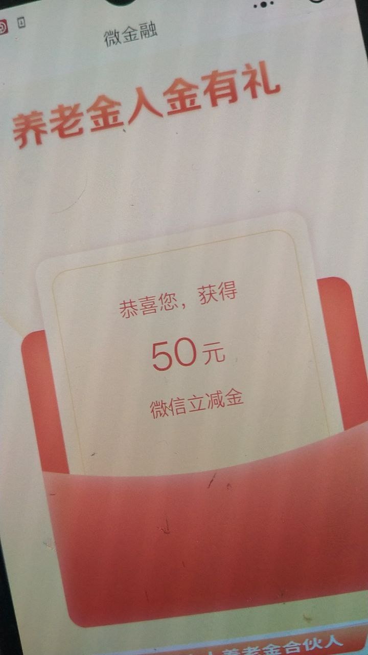 微信扫码打开或者搜微金融找到养老金开通领,可以买东西或者上分我领到了50。其它银行应该也有这个活动老哥们可以去看看。